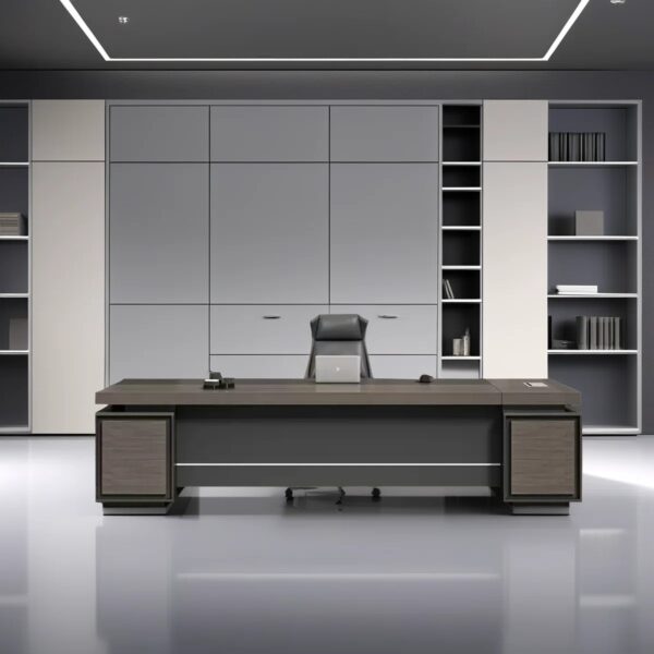 The Bella Executive Desk by Office Plus Furniture UAE offers executive luxury with a sleek design. It features lockable drawers for secure storage and open shelves for extra space and display.